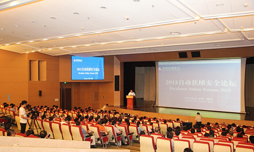 2015年8月27日,由中國電梯協(xié)會舉辦的首屆自動扶梯安全論壇在廊坊阿爾卡迪亞酒店成功舉辦。本次會議得到了社會各界廣泛關(guān)注和支持,包括廊坊市委常委、副市長喻華峰、中國電梯協(xié)會理事長李守林、國內(nèi)外專家、企業(yè)代表、用戶代表及行業(yè)中立組織共300余人參加會議。