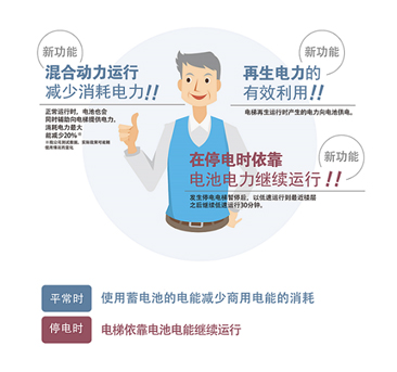 作為ELCOSMO-III型乘客電梯的專屬附加功能,“TOSMOVE”在發(fā)生停電之后將迅速切換至電池模式,以低速運行至最近樓層,并可在隨后保持0.5米/秒的速度續(xù)航長達30分鐘。在續(xù)航過程中,電梯轎廂內的照明和換氣裝置可正常工作,為乘客提供便利。“TOSMOVE”系統(tǒng)模塊搭載東芝超級鋰電池SCiBTM,采用氯化物新型材料,較一般鋰電池具有更長的使用壽命和更好的低溫特性。即使發(fā)生內部短路,緩慢電流也能有效抑制發(fā)熱,確保使用安全性。
